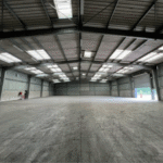 Entrepôt simple peau à la charpente métallique et couverture bac acier d’une superficie de 1 250 m² environ situé au pied de l’échangeur A13/A29, édifié sur une parcelle de terrain privée et clos d’environ 3 000 m².