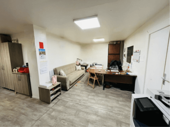 Bureaux : Open space + 1 salle archive avec Baie de brassage + 3 bureaux cloisonnés pouvant aussi servir de réfectoire ou vestiaire.