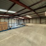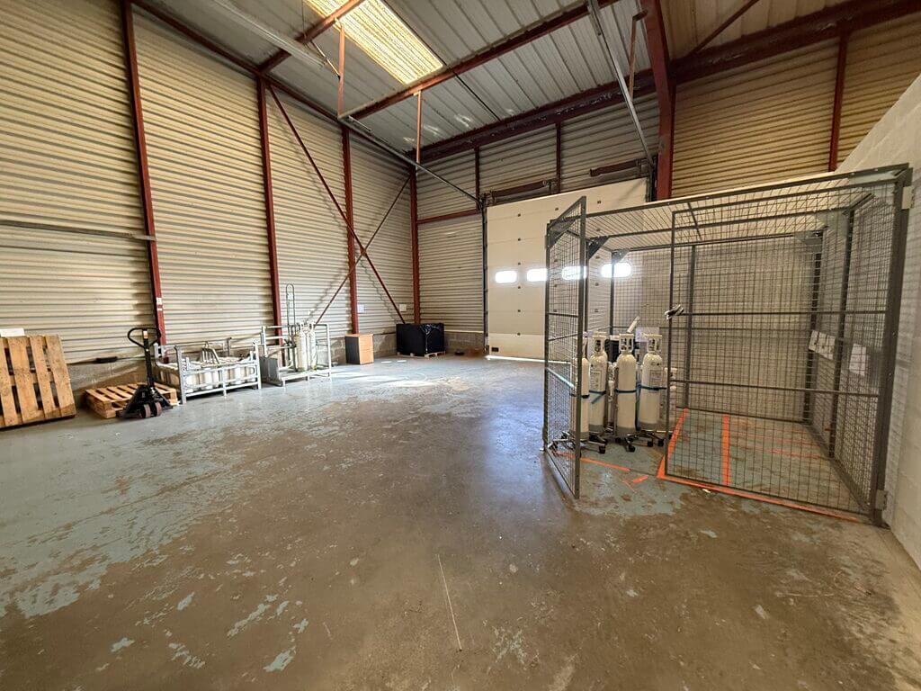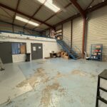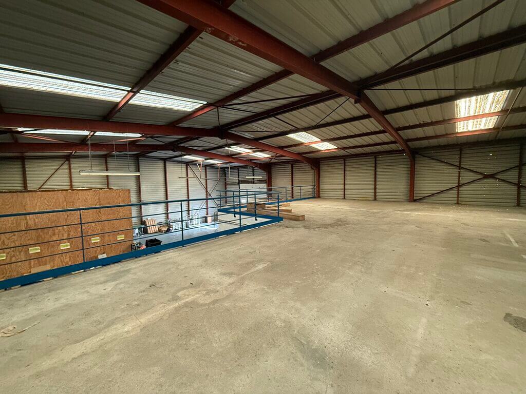 L’atelier de 225 m² comporte une pièce de stockage supplémentaire de 45 m² et une mezzanine de 190 m².
