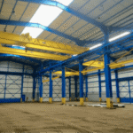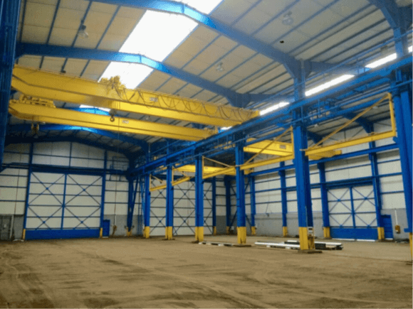 • 1500 m² d’atelier isolé double peau 10 ml au faîtage, équipés de 4 ponts roulants de 10 tonnes disposant de 8,20 ml sous crochets, 3 grandes portes coulissantes d’accès de plain-pied dont 2 de 6,00 ml de hauteur environ.